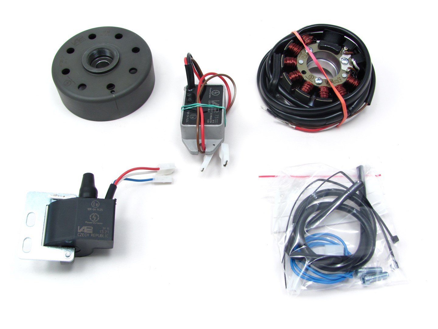 Output 12V / 100W DC. Replaces the original 6V light magnet system. Fits the original Lima holder without changing the engine housing.